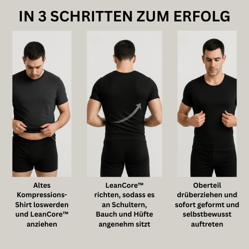 Hinter dem LeanCore™ Shirt steht ein engagiertes Team aus Ärzten, Gesundheitsberatern und Fitnesstrainer, das sich auf innovative Lösungen für einen gesunden Alltag spezialisiert hat. Wir sind ein transparent arbeitendes Unternehmen, das auf Qualität, Sicherheit und Kundenzufriedenheit setzt. Vom Produktdesign, der sicheren SSL-verschlüsselten Zahlung bis zum Versand achten wir auf höchste Standards – und sind jederzeit persönlich für dich da.
